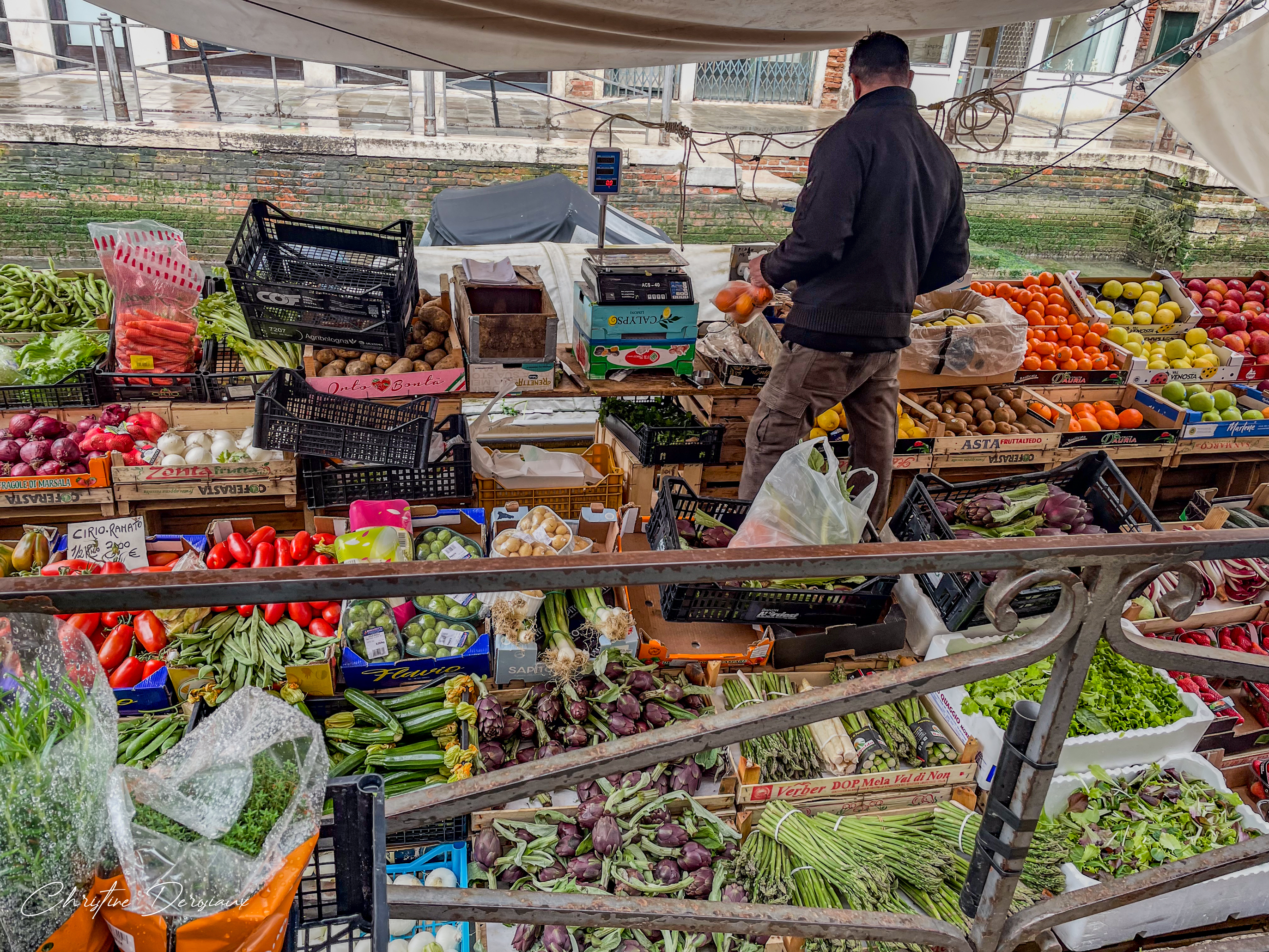 Le lendemain, pour notre dernière journée, nous avons pris le temps de nous balader à nouveau dans Venise. Nous sommes allés jusqu'au bout de la Via Giuseppe Garibaldi, en longeant la Riva S. Biasio. Nous y avons découvert un charmant marché flottant : des fruits et légumes exposés sur une barge, un tableau pittoresque typiquement vénitien.